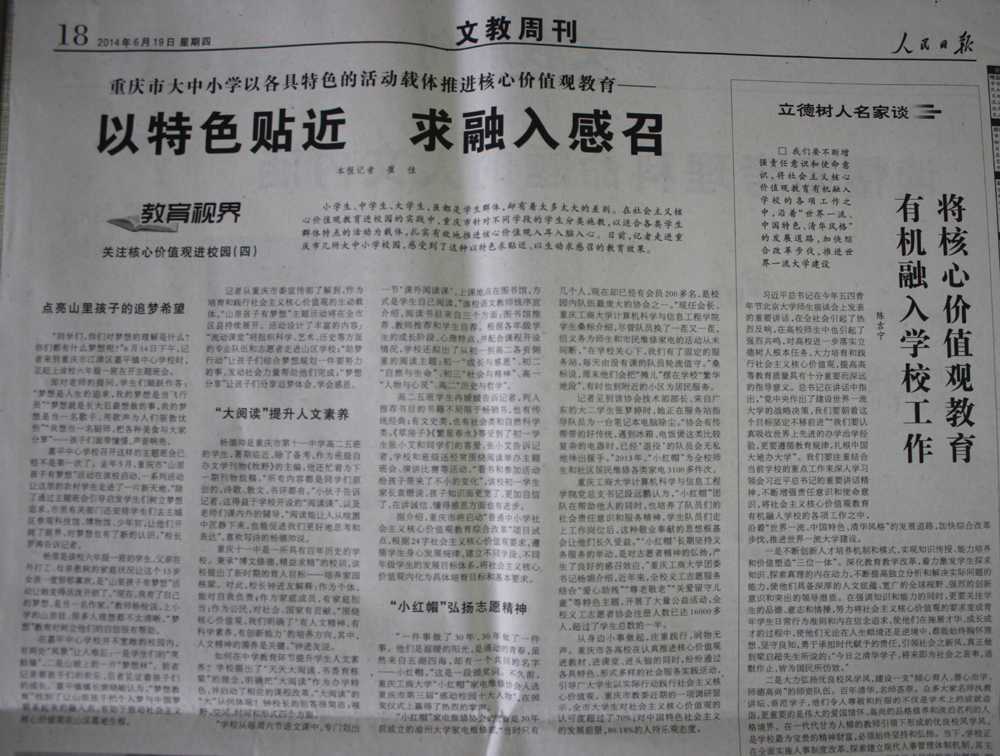 2014年6月13日上午,《人民日报》记者到太阳成集团122ccvip香樟林服务站,对小红帽家电维修协会的成员进行现场。2014年6月19日,《人民日报》第18版报道了小红帽30年如一日志愿服务的感人事迹。