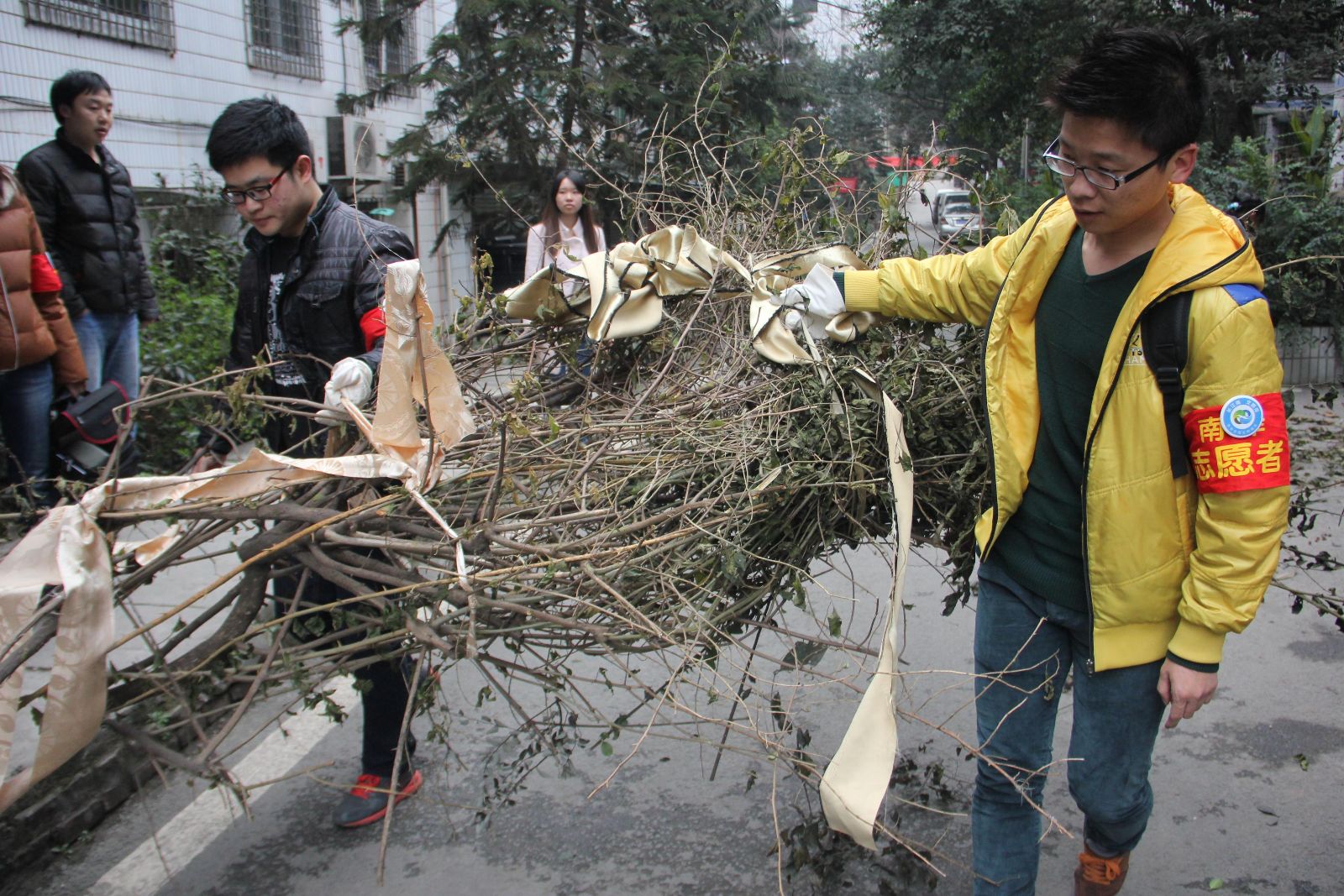 计信公司志愿小分队队员帮助崇文社区清理干枯树枝