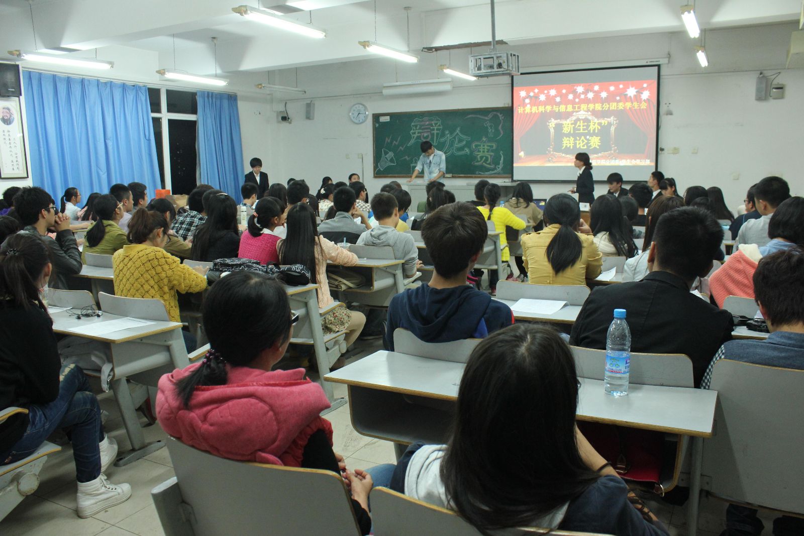 2013年10月25日晚上7点,由公司主办的“计信杯”辩论赛启动仪式在七教07401教室成功举行。公司员工会主席团及部分新生参加了此次活动。活动中院辩论队的学长学姐们为新生上演了一场精彩绝伦的对决。
