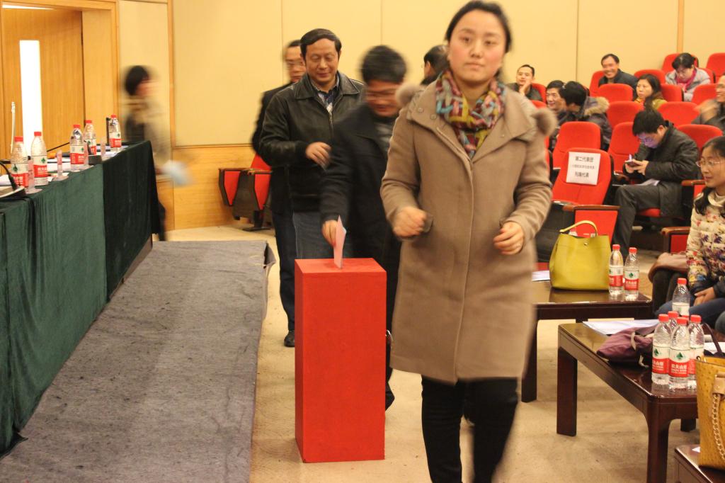大会选举阶段,在总监票人罗棻老师的支持下,全体正式代表依次排队,庄严投票,选举公司教代会、工会和经费审查委员会委员。