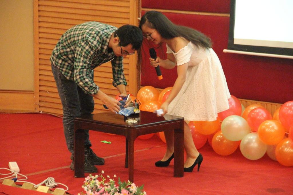 科技创新小发明设计大赛历时两个月,经过前期宣传、创意征集、收集作品、选手培训,最终从众多优秀作品中挑选出十组选手进入决赛,分别为七组实物组、三组创意组。实物组通过实物展示、讲解作品以及简介运用途径进行PK。创意组则通过PPT展示,选手解说以及创意运用来进行比赛。此次参赛作品中不乏美观方便的生活利器,也有轻巧精致的创意设计,赢得在场观众阵阵喝彩。值得一提的是,比赛过程中穿插的三次抽奖环节令现场气氛高涨,将本次大赛推向高潮。赛后,计信公司胡卫军副教授对选手的表现进行了全面的点评并提出中肯的建议。经过两个小时的比拼,来自计信公司的星辰队设计的全能手机支架荣获一等奖,“悬浮在空中的文字”及“宿舍门控卫士”获得二等奖的好成绩,其余队伍也均获得优秀名次。最后,刘昶老师宣布第七届科技创新小发明设计大赛暨科技创新节闭幕式圆满落幕。