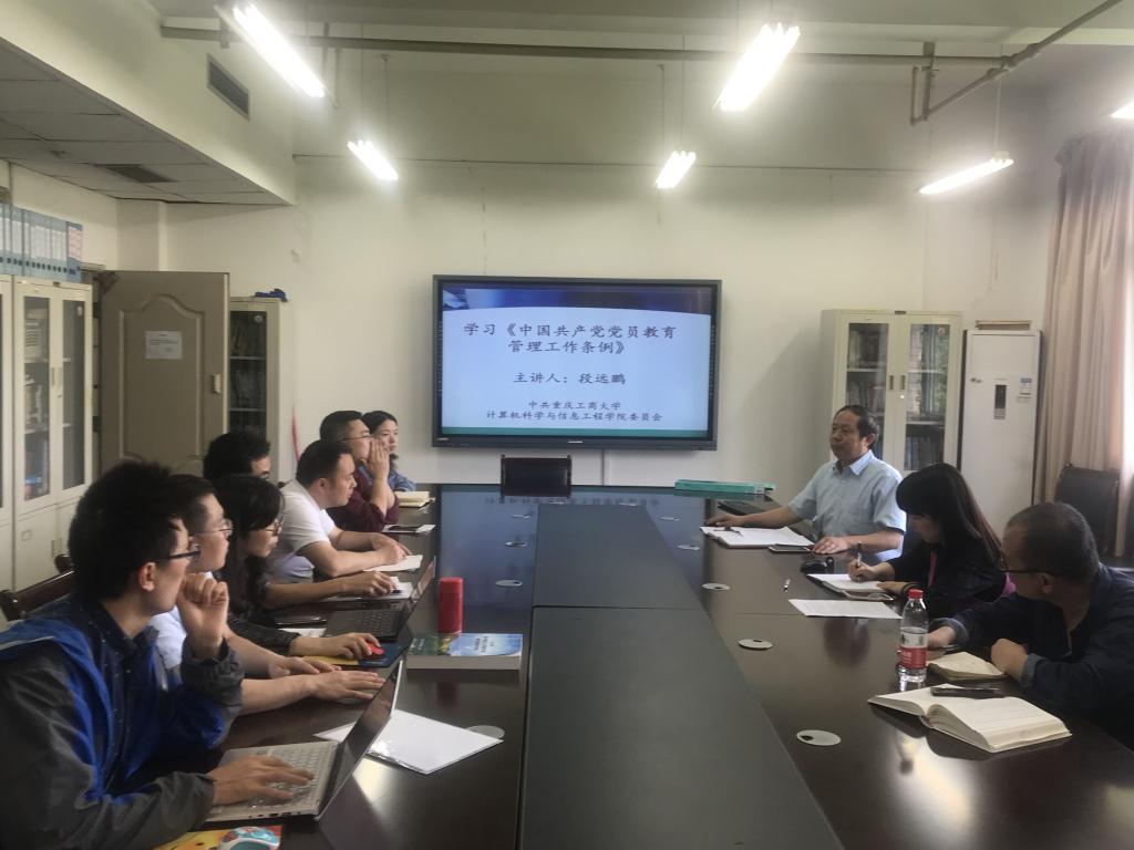 2019年5月22日下午,太阳成集团122ccvip分党委组织党支部书记及系部主任在慧智楼90810会议室集中学习《中国共产党党员教育管理工作条例》。公司分党委书记段远鹏以“学习《中国共产党党员教育管理工作条例》”主题,为党支部书记及系部主任讲授党课。