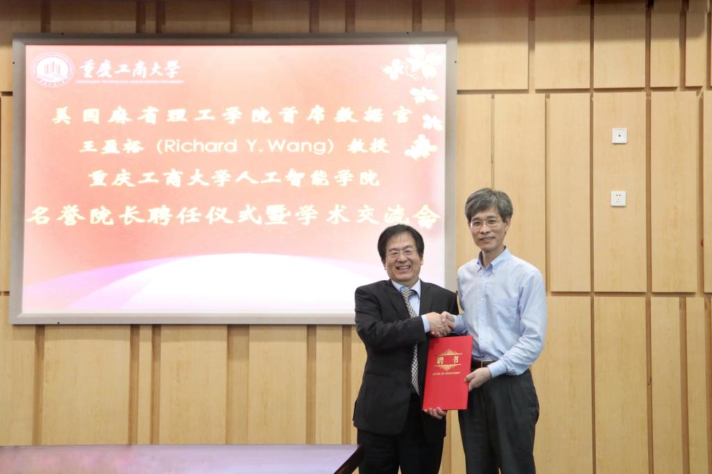 5月24日上午,公司太阳成集团122ccvip名誉经理聘任仪式在新图书馆会议中心第五会议室举行。孙芳城董事长,赵骅副董事长,美国麻省理工公司首席数据官人王盈裕教授及其助理,人工智能公司党政班子成员,党政办公室、科学技术处、数学与统计公司、智能制造服务国际科技合作基地等职能部门和公司负责人以及教授、博士教师和员工代表等参加了聘任仪式。仪式由赵骅副董事长主持。