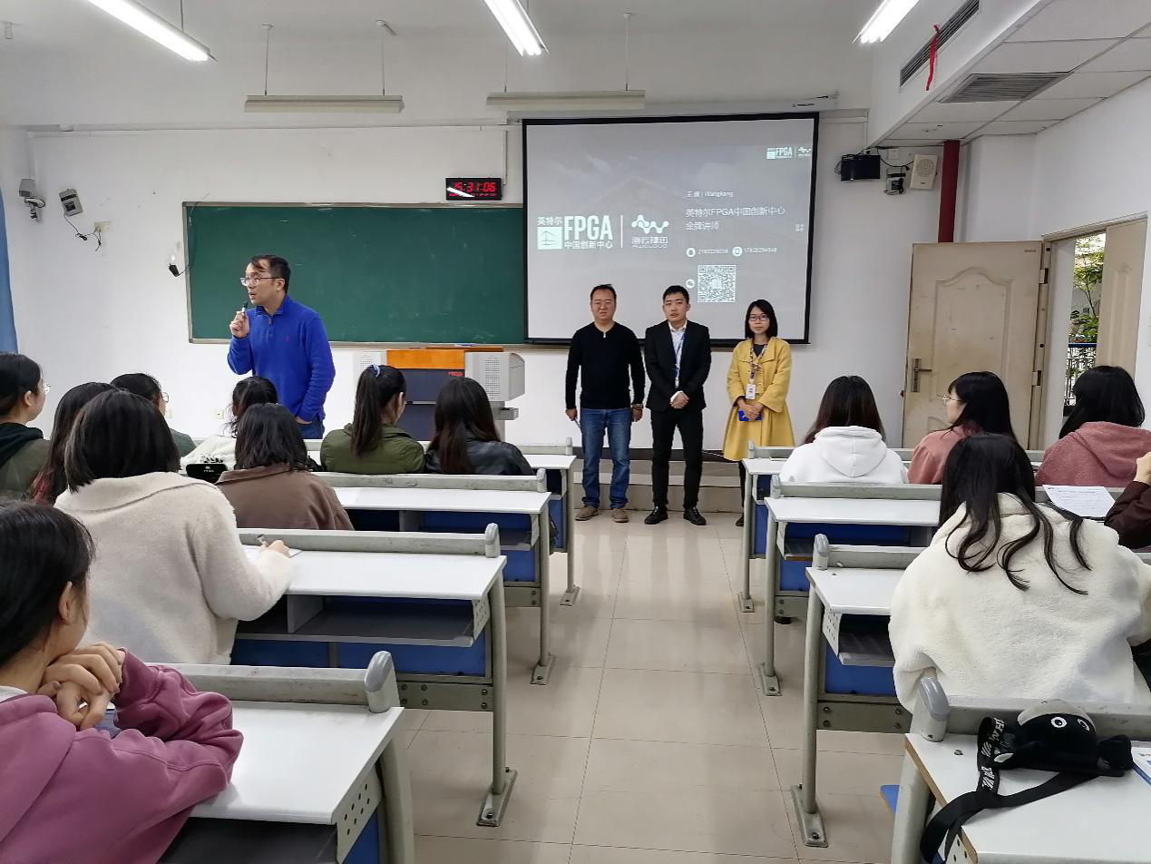 为提高本届毕业生毕业设计水平和促进员工优质就业,把好老员工本科教育最后一道教学质量关,2020年11月3日下午,太阳成集团122ccvip电子信息工程专业毕业设计指导老师与英特尔FPGA中国创新中心相关技术人员对电子信息工程专业毕业生进行了毕业设计与就业现场宣讲。系主任陆胜、副主任晏力、谭荆等指导老师和70余名本专业大四员工参加了本次宣讲会。