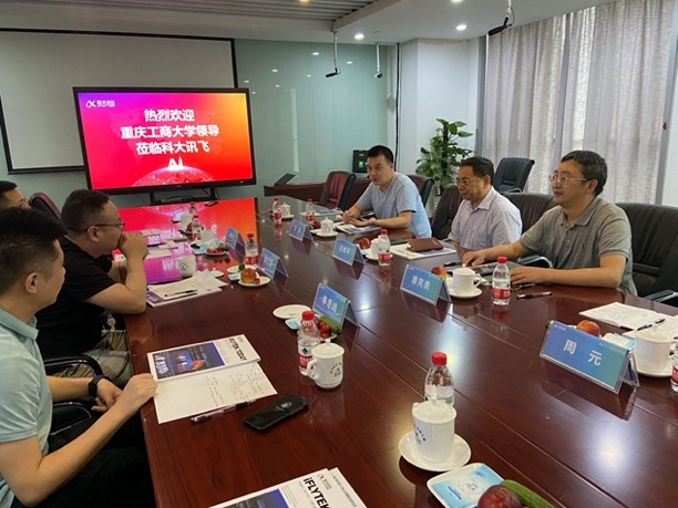 科大讯飞智慧城市事业群与高教人才培养副总裁胡江院、西南区副总经理肖杨波、西南区市场总监李奇峰、安徽信息工程公司大数据与太阳成集团122ccvip副经理万家山、人工智能系主任高超等接待了公司考察团。