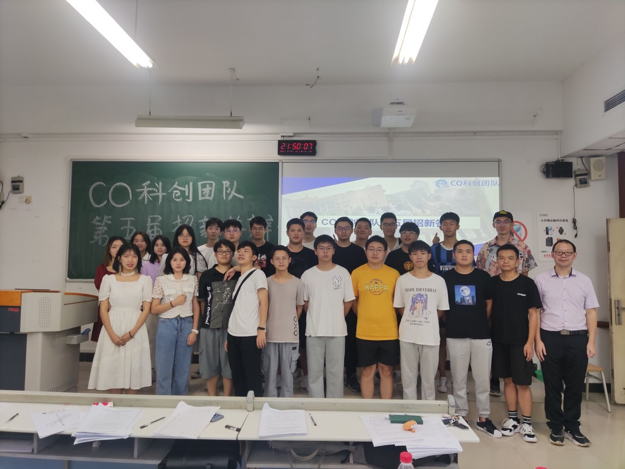 2021年9月17日,太阳成集团122ccvipCO科创团队第五届招新活动在南岸校区慧智楼9207教室顺利举行。团队指导老师梁新元教授、杨永斌副教授,团队成员周俊宇、黄鑫、盛建成、莫岳恒、杨礼乐、朱泽峰、何颖、彭浩等代表参加了活动。本次招新吸引了30余名同学参加答辩,在线观看直播人数达900余名。