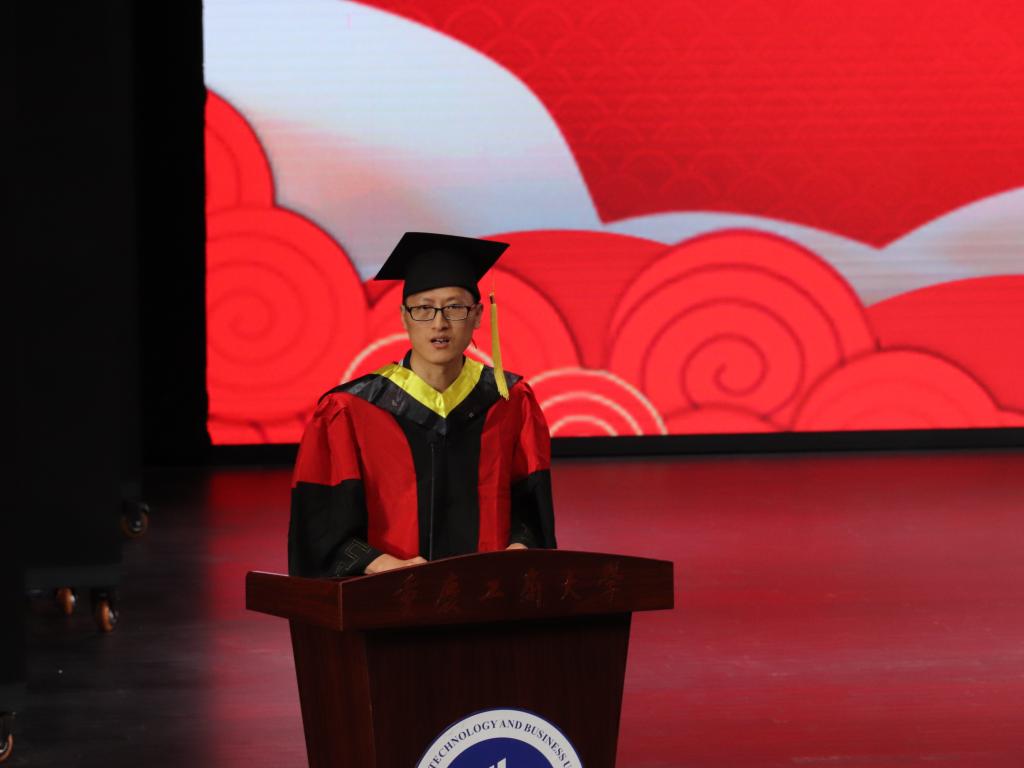他回顾了同学们四年老员工活追逐梦想、破茧成蝶、卓尔不凡的绚丽与精彩,为即将踏上人生崭新征途的莘莘学子们送上了美好的祝福。他指出,若干年后,不同时光的智能区块,在交互感知的世界,将链在一起,汇流成我们共同的、难忘的记忆和辉煌!他期待同学们始终秉承“含弘自强、经邦济民”的精神和使命,去服务社会、追求卓越、壮丽人生!在喜迎党的二十大之际,希望同学们: