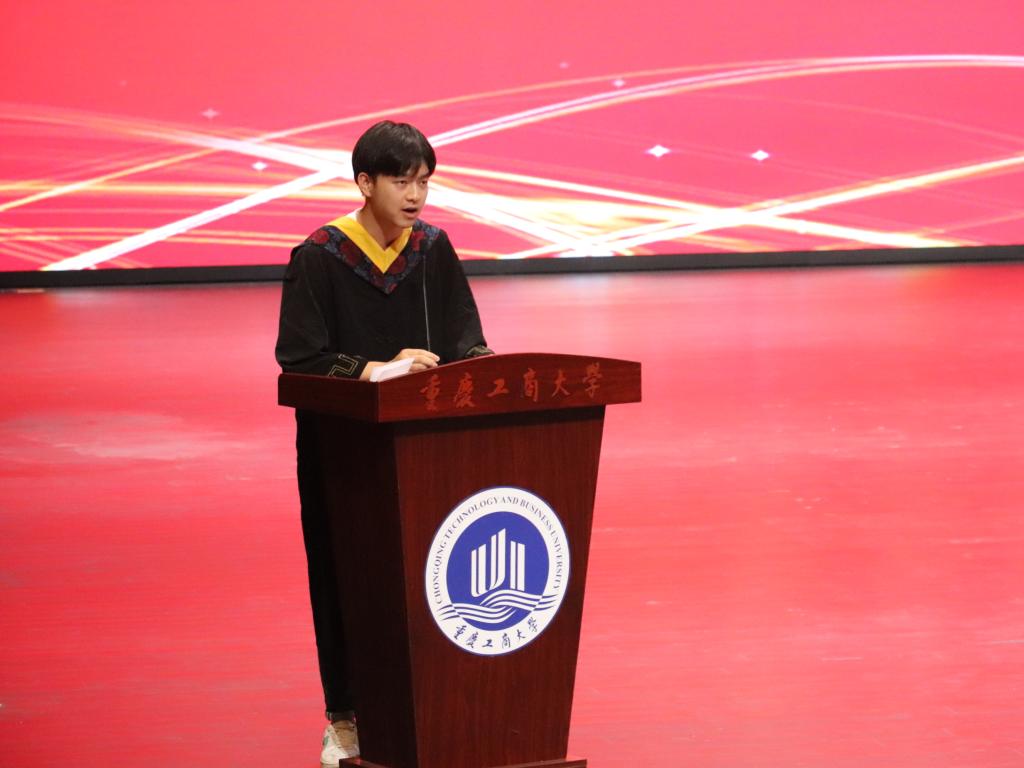 95级测控专业、公司员工分会执行会长印强发言。他与同学们分享了求学的经历和对人生、工作的思考。他说,长期以来“厚德博学,求是创新”的校训不仅是他求学阶段的一把标尺,更是人生道路上的一盏明灯。他希望同学们始终秉承校训,奋力拼搏、扬帆逐梦,投身祖国的建设,展现CTBU人的格局和风范。
