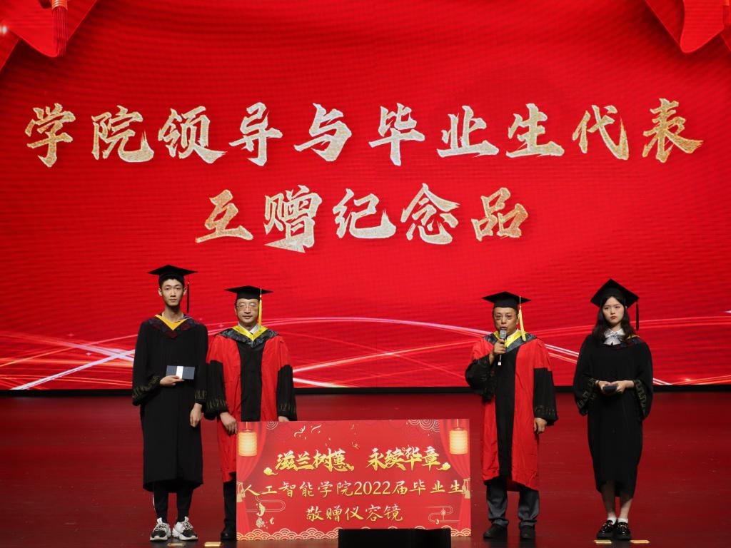 饮水思源,殷殷嘱托。院领导与毕业生代表互赠纪念品。在热烈的掌声中,何希平代表公司对毕业生致以最诚挚的祝贺和最美好的祝愿。