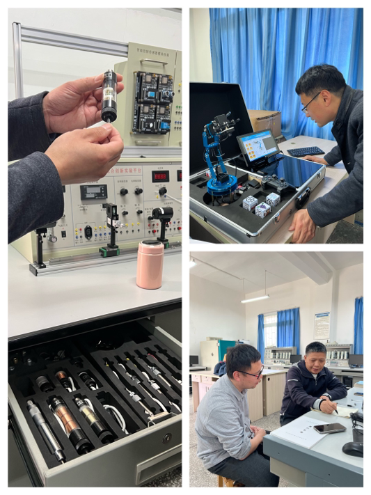 “CSY-5000传感器综合创新实验平台”是浙江高联检测技术有限公司最新款平台,除传感器和检测技术54个基础实验外,还有mesh组网传感系统,红外热成像传感系统,AI图像处理系统等,测控和自动化专业传感器及检测技术、测控网络技术、无线传感器网络技术,测控电路、嵌入式系统原理及应用、自动控制原理、运动控制技术、机器学习等课程均可在此平台开展创新实验,也可支持课程设计、毕业设计和竞赛等综合实践环节。培训现场高联公司技术人员对基础实验和创新实验分别进行了部分演示,参会老师对设备使用和实验项目的开放性设计提出了一些要求,系部资深教师江朝元、文远熔等与年轻博士们对技术问题展开了热烈的讨论,黄敏老师当场就构思出自己的《自动控制原理》可以在此平台上开设的实验项目。系部要求会后每位老师思考自己任教的课程与实验平台接口的可行性,至少设计1-2个实验项目到本综合实验平台上开展,强化员工对测控系统的概念,拓展员工眼界。
