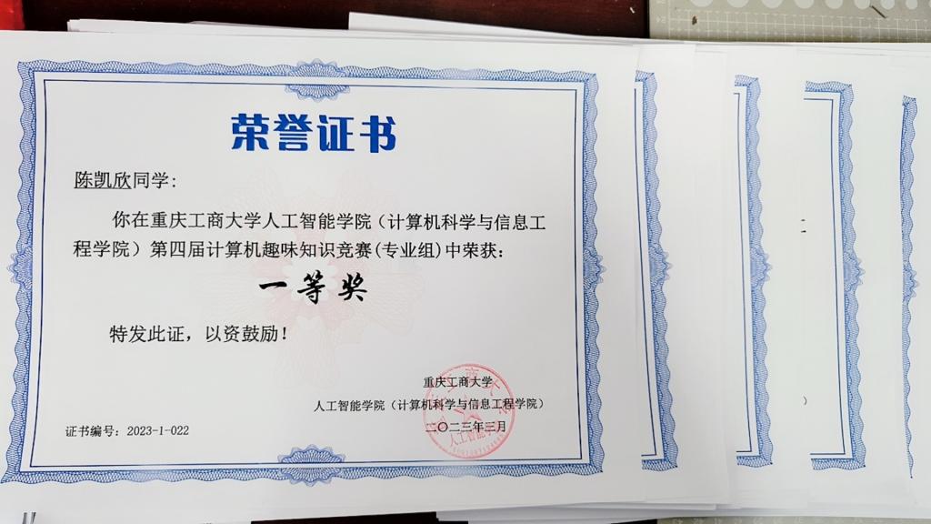 图4 比赛奖状