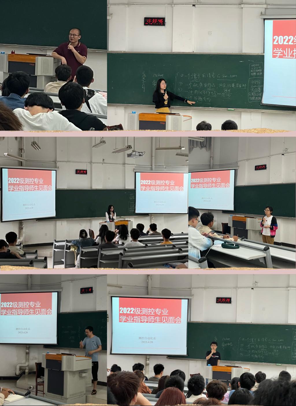 图1 测控与自动化系老师为同学们做学业指导(李明(左上)、庞景月(右上)、王荣秀(左中)、曹晓莉(右中)、杨峰(左下)、江超(右下))
