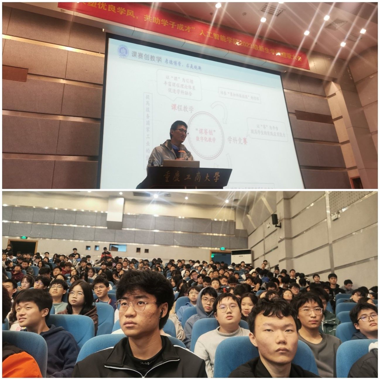 张未副书记对2023级新生学习和生活情况进行了数据分析,收集反馈了期中教学座谈会以及授课教师对新生学风现状的意见和建议,对大一年级的学业状况进行了通报和提醒,通过“为什么上大学”、“下一站去哪里”两个问题的抛出和回答,提出了推进兰花湖员工社区学风建设的四项措施。