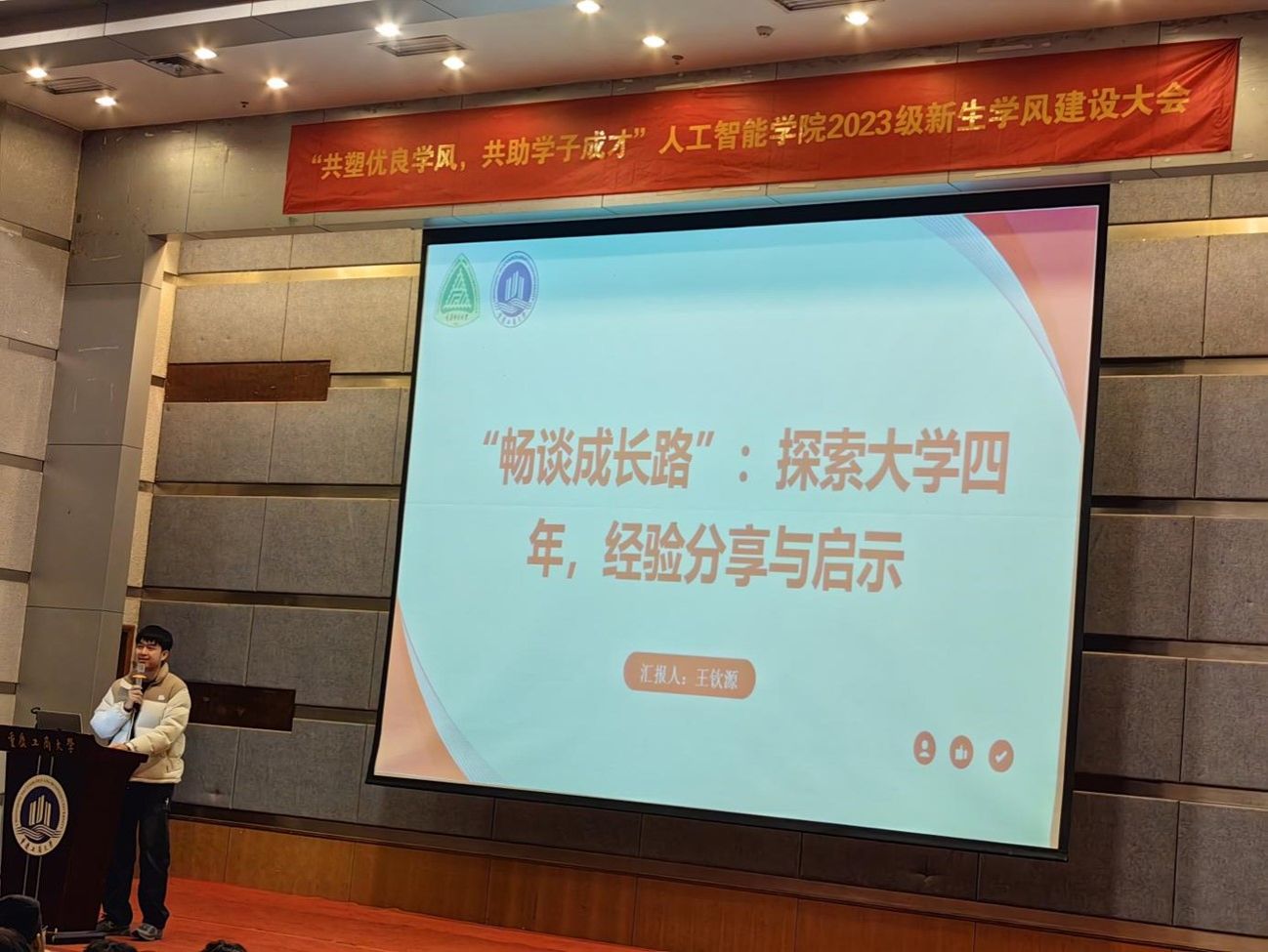 2020级智能二班刘波同学分享了自己大一进校后从迷茫无措到奋发进取的历程,以目标为导向,介绍了各科学习方法,结合自己的专业特点,分享了职业规划建议,宝贵的经验和建议为新生未来四年的学习规划提供了重要参考。
