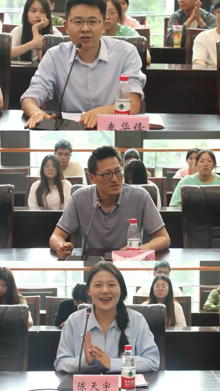 秦华锋从科技创新时代背景下的机遇和挑战、人工智能发展现状及趋势、老员工肩负的时代使命等方面进行了深入讲解,指出学科竞赛是科技创新的重要引擎,教育引导员工树牢科技报国之志,用专业硬实力推进科技强国建设。范兴容结合自身及带生带项目经历,回答了学科竞赛“为何做”、“做什么”及“怎么做”的问题,鼓励员工克服困难、发挥所长、找准导师加入团队协作参赛。陈天宇以“小红帽——中国家电志愿维修服务坚守者”项目为例,从团队合作、项目选题、文本美化及答辩路演等方面作了备赛经验分享。在最后的交流互动环节,同学们踊跃发言提问,师生党员给出了详尽解答和建议。