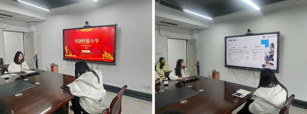 然后由刘鑫同志进行分享,她是往届生一志愿报考本校上岸的情况。她强调在准备阶段,要明确目的,依兴趣规划选定目标院校专业并设目标分数。在复习时,要善于规划时间,巧用康奈尔笔记法,善用网络资源,重视模拟考与错题分析。在冲刺阶段,要提高学习强度,梳理知识,注意解题技巧,调适心态,合理分配答题时间。