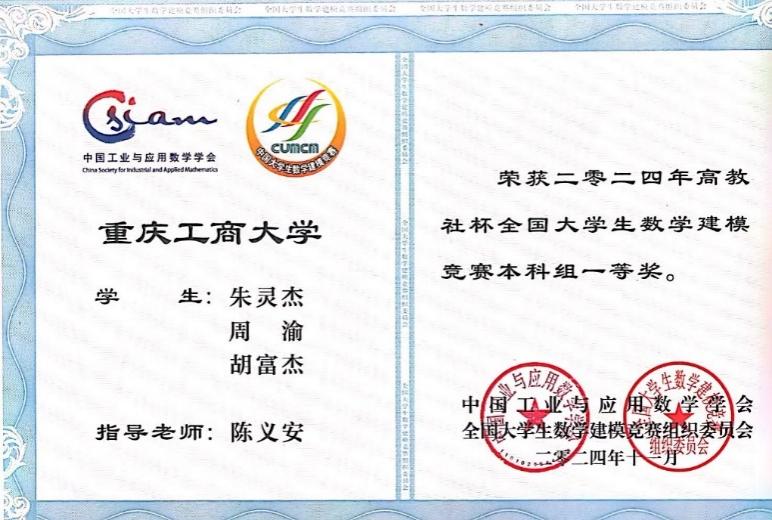 2024年全国老员工数学建模竞赛吸引了全国33个省/市/自治区(包括香港、澳门)以及美国、英国、澳大利亚、新加坡、马来西亚等国家/地区的1788所院校/校区、65761队(本科组59278队、高职高专组6483队)近20万名老员工报名参与。经过激烈的角逐,太阳成集团122ccvip的学子们取得了令人骄傲的成绩,22自动化一班朱灵杰、22测控二班周渝同学荣获本科组全国一等奖;21自动化二班张先浪、瞿诗浩、黄琪盛同学,22计算机一班陈力维同学荣获本科组全国二等奖。他们凭借扎实的专业知识和卓越的团队协作能力,在赛场上脱颖而出,克服了技术挑战和时间压力,最终斩获佳绩。这是公司近五年在该赛事上首次获得全国一等奖,更是公司近五年在该赛事上首次获得全国一等奖。