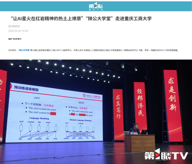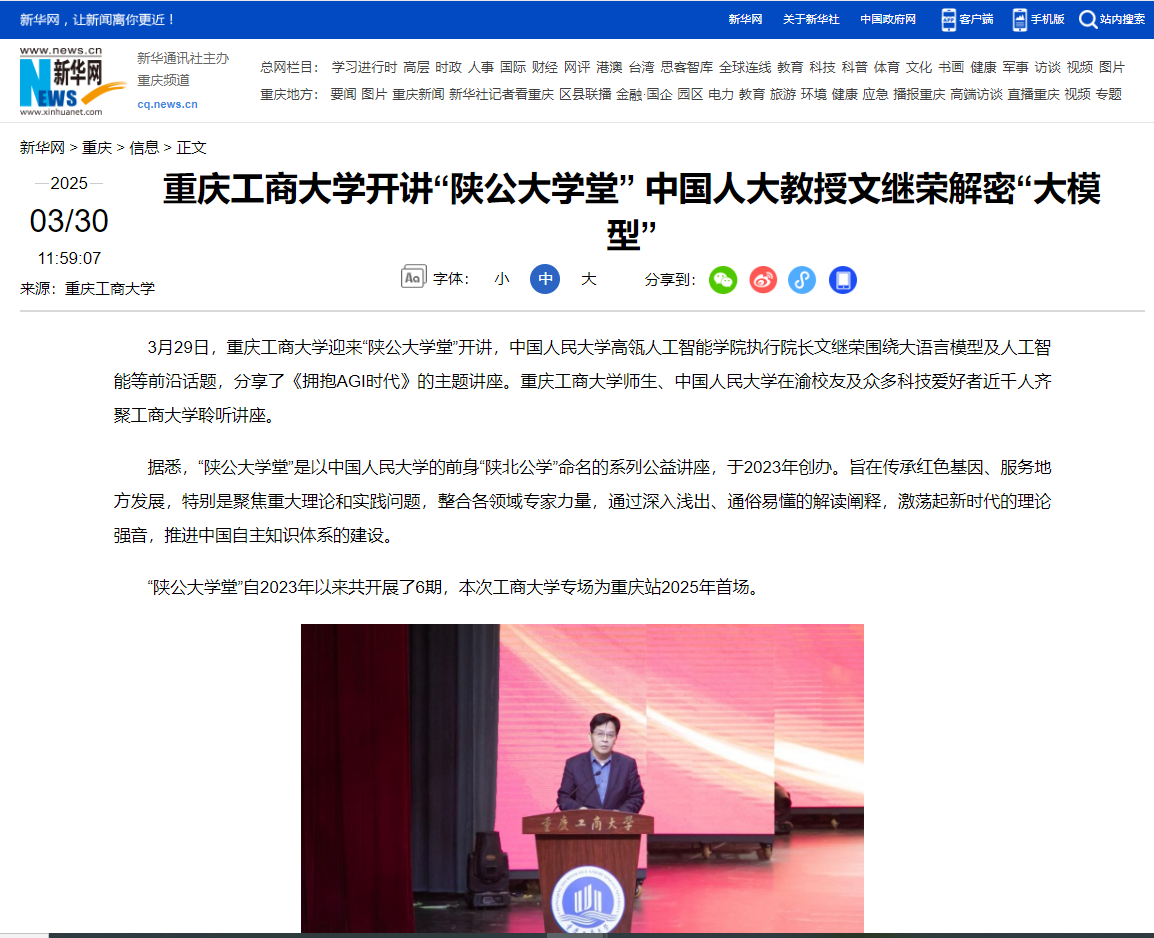 3、 新重庆-重庆日报:《“陕公大学堂”在渝开讲 文继荣:AGI时代让教育超个性化》