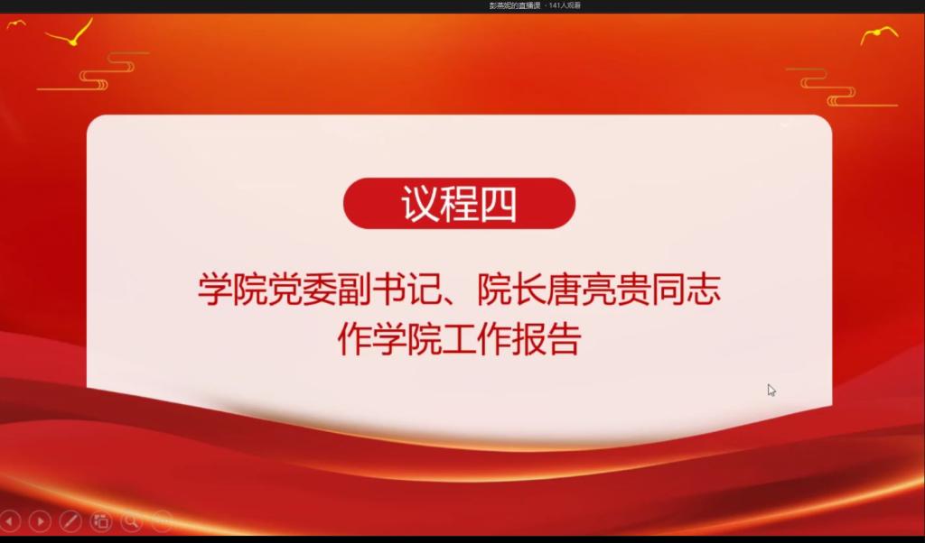 公司党委副书记、经理唐亮贵以《矢志立德树人、坚定创新强院,奋进太阳成集团122ccvip高质量特色发展新征程》为题做了公司工作报告,从党建工作、团队建设与研究生教育、专业建设与本科教学工作、科研创新事业发展、团队队伍建设、校企合作办学、员工工作等方面全面回顾了过去一年的工作和取得的成绩,针对工作中存在的问题和面临的困难提出了具体的整改措施,对2023年度公司各项事业改革、创新与发展提出了明确目标。