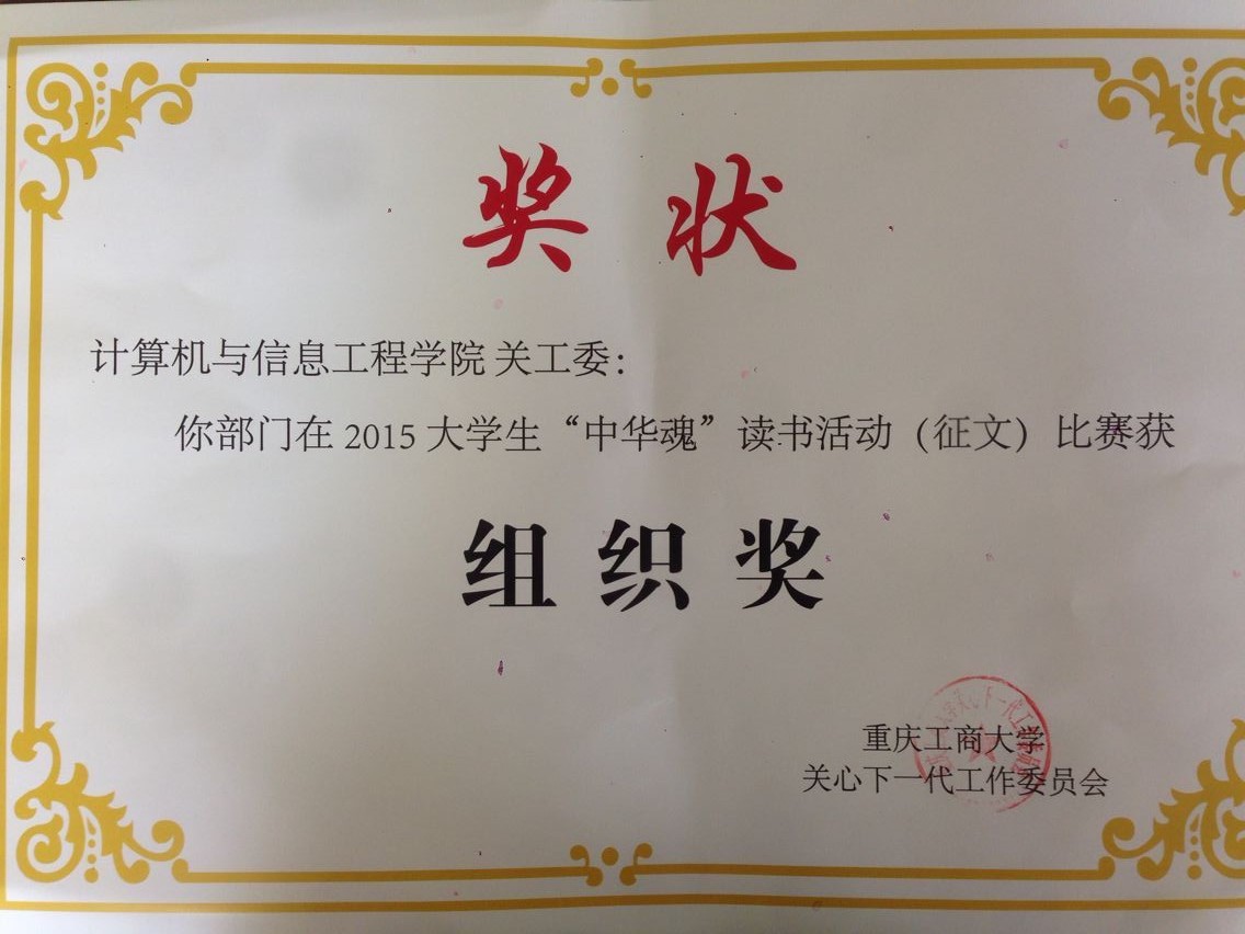 公司关工委在2015年老员工“中华魂”读书活动(征文)比赛中荣获组织奖。公司黄亚果、徐秀慧老师荣获优秀指导老师奖。杨恩福、唐毅、蒋添三位同学的文章荣获二等奖、陈珊、刘铭扬、何晓、蔡晓斌四位同学的文章荣获三等奖。