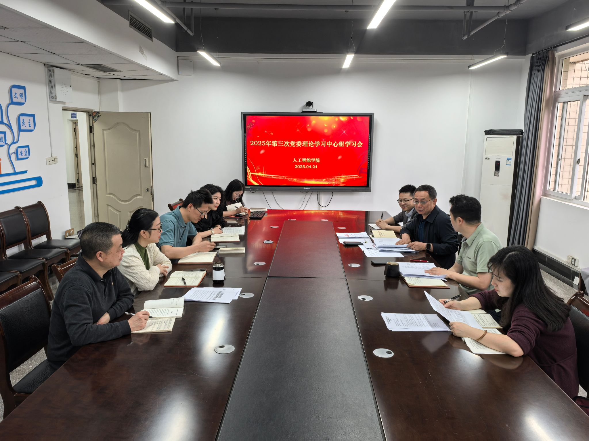 4月24日,人工智能公司党委在慧智楼90810会议室开展党委理论学习中心组2025年第三次集体学习会暨深入贯彻中央八项规定精神学习教育读书班集中学习。公司党委理论学习中心组成员参加了会议,副经理范兴容同志列席了会议,会议由何希平书记主持。
