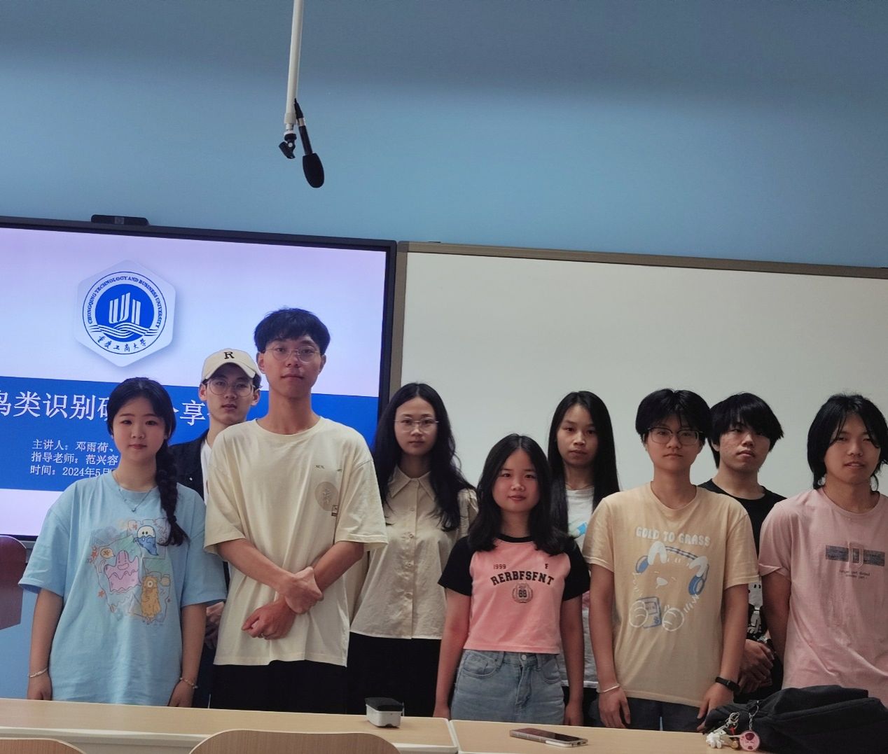 活动伊始,2022级人工智能专业本科生陈惠婷同学就“鸟类识别研究”课题进行精彩的概述。她详细介绍了课题的研究背景、意义、已有成果与业界对比,以及对未来成果的展望,为同学们揭开了鸟类研究的神秘面纱。